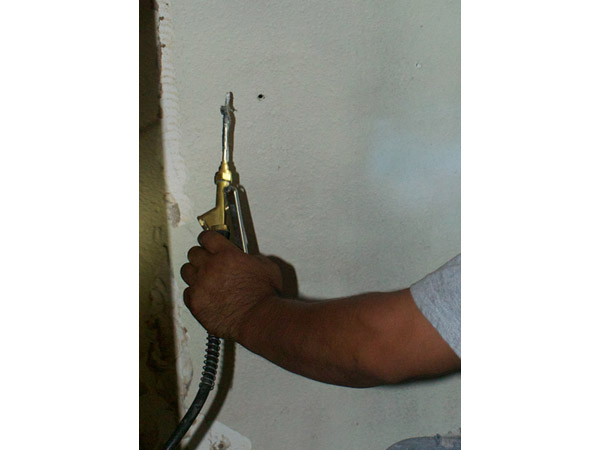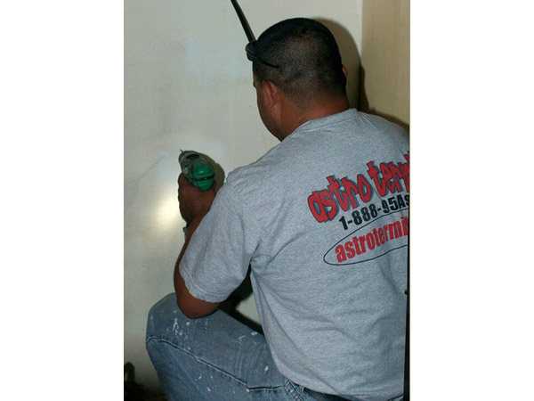 In certain cases it becomes necessary to drill small holes in the walls in order to treat for termites within the wall cavities.