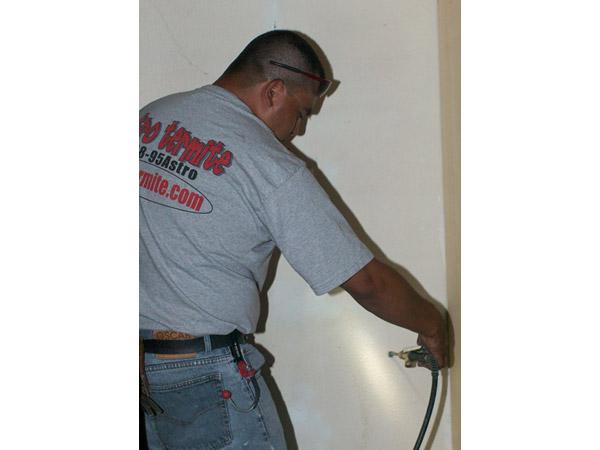 In certain cases it becomes necessary to drill small holes in the walls in order to treat for termites within the wall cavities.